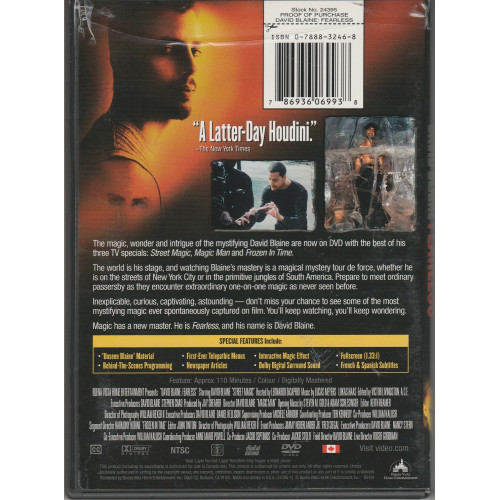 The magic , wonder and intrigue of the mystifying David Blaine and now on dvd with the best of his three TV specials: Street Magic, Magic Man and Frozen In Time