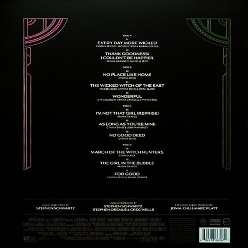 Wicked: For Good – The Soundtrack features performances by the stars of the electrifying conclusion to Universal Pictures’ global cinematic Wicked sensation, Wicked: For Good. With music and lyrics by legendary Grammy and Oscar winning composer and lyricist Stephen Schwartz, the soundtrack includes two new original songs featured in the film: “No Place Like Home” performed by 3x Academy Award® nominee, Grammy-winning Cynthia Erivo as Elphaba, and “The Girl In The Bubble” performed by Academy Award nominee, Grammy-winning Ariana Grande as Glinda. In addition, “The Wicked Witch of the East” is exclusively featured on the film soundtrack, as it was not previously released as part of the Original Broadway Cast Recording. The soundtrack also features fan-favorites “Thank Goodness,” “As Long As You’re Mine,” “No Good Deed,” and the title track “For Good.”